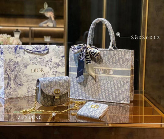 【ディオール】◆大人気 BOOK TOTE 定番柄刺繍 トートバッグ-3 sizes