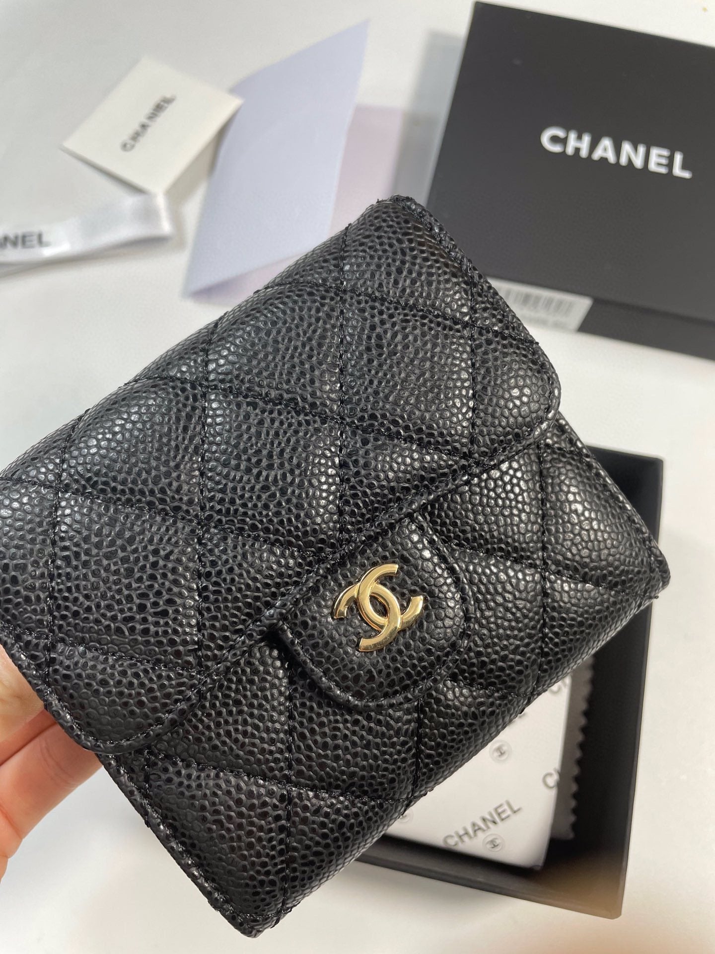 【シャネル】マトラッセ♪二つ折り財布 ♪ミニウォレット*キャビアスキン黒AP0229 AP0231