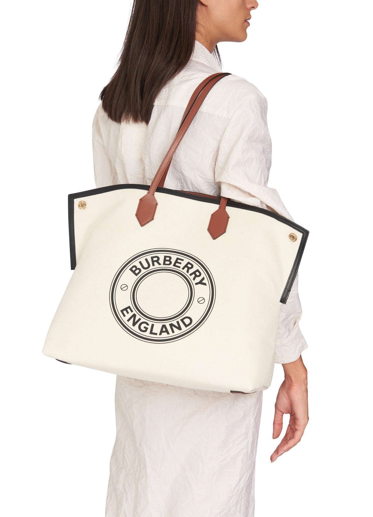 【バーバリー】期間限定SALE★ミディアム ロゴ コットンキャンバス トート